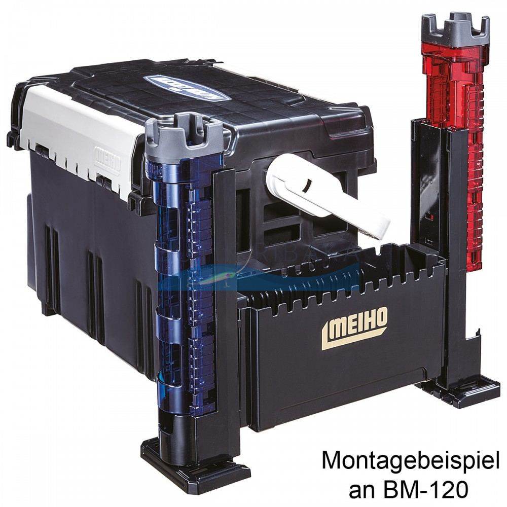 Meiho Side Pocket BM-120 имеет следующие размеры - 261х125х97 мм. В карман отлично помещаются несколько рыболовных коробок, так же к нему можно прикрепить стаканы для удилищ Мейхо серии BM или держатель для бутылки этой же фирмы. На стенке контейнера есть прорези – за них удобно вешать приманки цепляя их за крючки. Фиксация к ящику происходит с помощью двух специальных защелок. В комплекте поставляется 6 съемных перегородок с прорезями. Модель Meiho Side Pocket BM-120 подходит к ящикам следующих серий : BM-9000, BM-7000, BM-5000, VS-7070, VS-7070N, VS-7055, VW-2070, VW-2055.